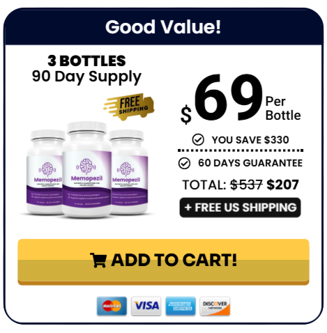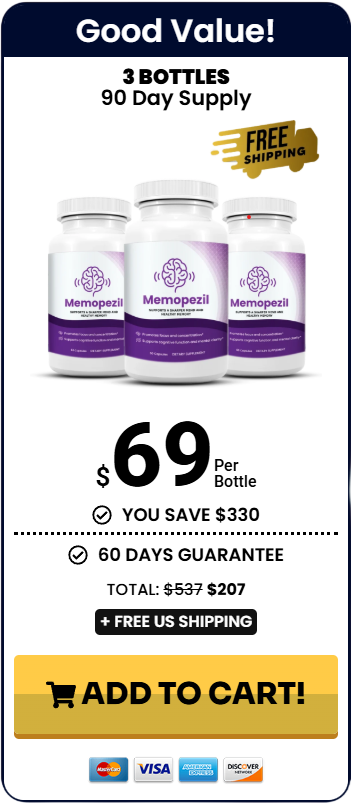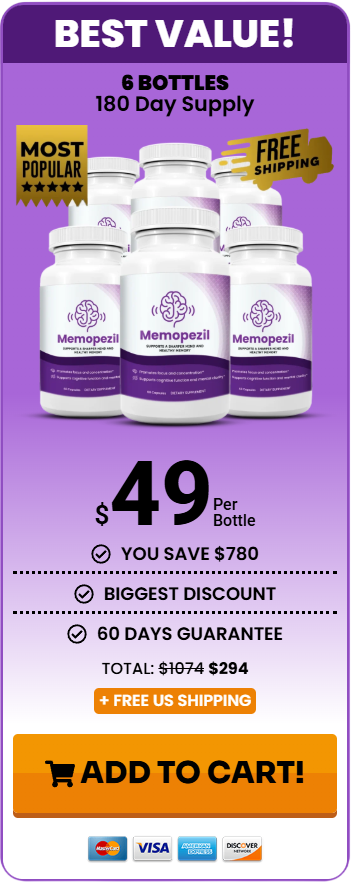 Memopezil is manufactured in the United States in FDA-registered, GMP-certified facilities. All ingredients are laboratory tested for purity and quality. Your purchase is a one-time payment — no subscriptions, no hidden fees, no automatic renewals.